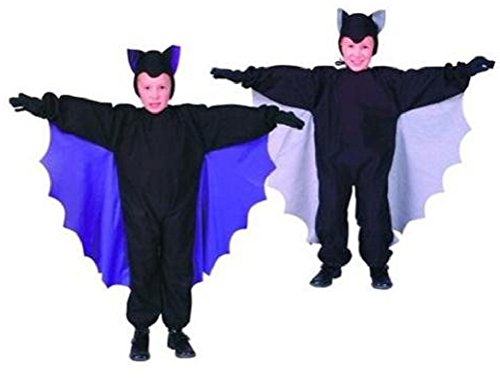 The 2pc costume includes jumpsuit with bat-like wings and hood.