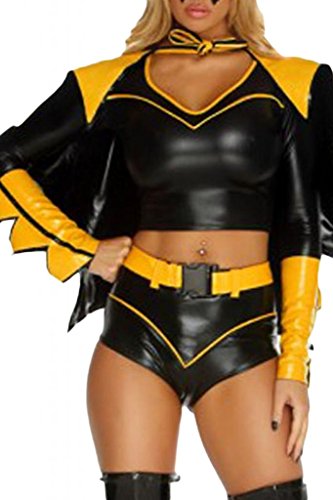 This 6 Pcs Action Packed Super Hero Costume brings back the role-playing factor of Halloween with a big kaboom! This polyester/spandex blend is coated with a metallic finish for a regal look to match your stance. The high-waisted shorts have a click-in belt and the matching top sports the black and yellow of Batman. Armbands with spiked forearms are included to make scaling walls easier. A flirty eye mask concludes this full-on costume set so bat those eyelashes!Size (CM): Medium: Shoulder 9-12, Bust 87-104, Waist 71-86,Hip 91-108, Cuff 19, Sleeve 57-60,Length Top 34-37, Outseam 33-36, Bottom 58-72(cm) Large: Shoulder 10-13, Bust 92-112, Waist 75-94,Hip 96-116, Cuff 21, Sleeve 58-61,Length Top 36-39, Outseam 34-38, Bottom 61-78(cm)