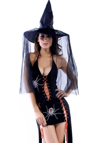 Black Widow Gown Costume with matching hat. Visit wholesale Halloween Costumes Category to wholesale your favorite details for the best witch costume ever.