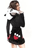 The Deluxe Panda Bear costume includes a black and white, plus mini dress with a zipper front, heart paw print back, long sleeves with paw details and an attached panda hood with ears and face.Size (CM): One Size: Shoulder 44.5, Bust84-112, Waist74-104, Hip 94-120, Hem 51, Cuff 10, Sleeve 63, Length 79(cm)