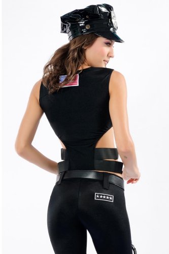 Sexy Swat Officer Female Costume includes long pants, vest, belt, baton and handcuffs (Glasses Not Included). Armed and Dangerous never looked so sexy. Special Weapons and Tactics – that's what every women uses to apprehend their man. Black Sexy Swat Officer Female Costume features a zip up top with a halter top and cut out sides, a tight pair of black pants, a belt, metal handcuffs.Size (CM): One Size: Bust 80-118, Hip 84-132, Length 45-72, Outseam 89-139(cm)