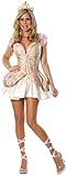- White mini skirt and lace-up top with soft pink and gold bodice and overskirt; tiara included