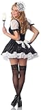 - Classic and classy sexy maid costume features a black mini dress with white accents; lace-up look bodice, attached apron, and ruffled underskirt