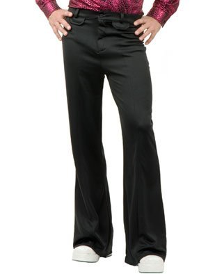 This 70s costume item includes one pair of polyester mens disco pants. These 70s style pants for are available in black, powder blue, turquoise, lime, orange, purple, red, yellow or white. Our mens disco pants comes in adult sizes 36, 42, 32, 34, 44, 38, 30, 46, 40. Disco shirts are available separately from these retro mens bell bottoms. Please note: This item's color may vary due to inherent manufacturing variations or your computer monitor's color settings. The item you receive will be identical or substantially similar to the item pictured in this listing.