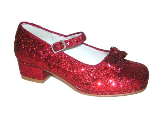 Real glittered ruby red shoes with bow. These shoes come in assorted sizes 7-12. Full sizes only. These are real children's shoes not pretend play ones.