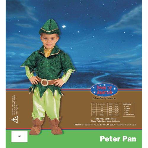 En avant la musique ! Direction le Pays imaginaire ! Le déguisement Deluxe de Peter Pan dont on ne se lasse jamais ! La panoplie contient : chemise, pantalon, ceinture, chapeau, couvre-bottes