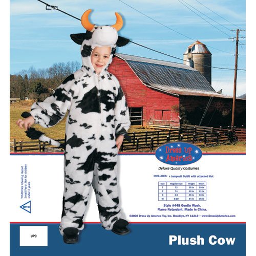 Meuh ! Pour se prendre pour une vraie vache imitation peluche ! La panoplie contient : une combinaison imitation peluche, la tête de l'animal est attachée à la tenue