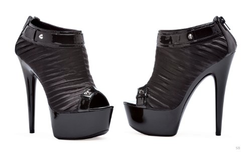 E-609-Somi 6″ Peeptoe bootie with satin ruching Platform Sandal. Color: Black. Sizes: 5-12.