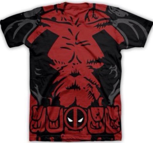 MARVEL COMICS DEADPOOL COSTUME ADULT SHORT SLEEVE T-SHIRT RED & BLACK EXTRA LARGE ( X-LARGE ) SIZE ONLY COSPLAY