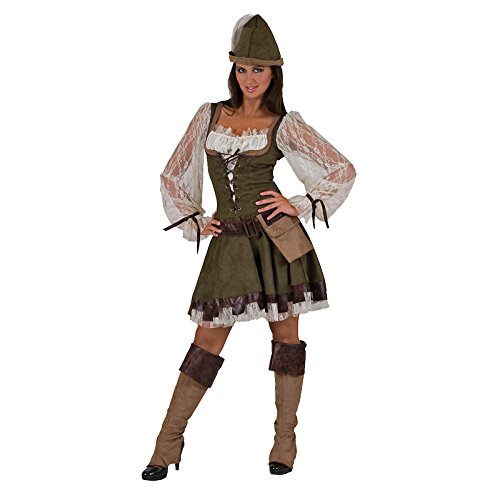 You'll steal more than gold when you wear this costume for Halloween. The Forest Maid Women's Costume includes a green dress with brown pleather trim and lace up front. An attached long sleeve lace blouse, coordinating hat, belt and boot covers enhance this costume (all included). You'll steal the heart of Robin Hood himself by wearing this costume for Halloween or a Medieval festival. You'll be the prettiest maiden in Sherwood forest when you don this beautiful ensemble.