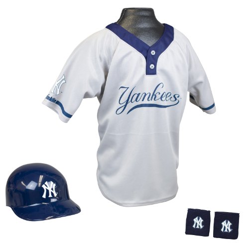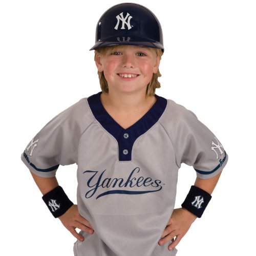 Major League Baseball Youth Team Set includes a team batting helmet, 100% polyester team jersey and a pair of team logo wristbands. Fits most kid's ages 5-9 years old. Perfect as a costume or to show your team support on game day! Helmet must not be used as protective equipment in baseball or any other sport.