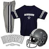 National Football League Deluxe Youth Team Uniform Set from Franklin Sports includes a team logo helmet with chin strap, team logo jersey with shoulder pads, team pants and a iron-on number kit (#'s 0-9). Fits most kid's ages 7-9 years old. Perfect as a costume or to show your team support on game day! Helmet must not be used as protective equipment in football or any other sport.