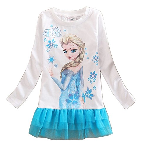 Frozen's Elsa Dress W/Crinoline Tutu-The dress is a size 5T and is made out of cotton. The front of the dress has Elsa on it and it has a blue crinoline tutu.