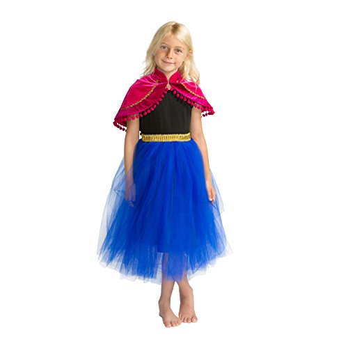 Her imagination is the runway to her flights-of-fancy in this lovely, caped ball gown! With layer upon layer of princess-friendly tulle on the skirt to the shining gold waistband to the tasseled detachable cape, she'll be enchanting!