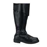 - Mens 18″ Tall Black Captain Style Wide Calf Pirate Boot (22″ Width), Small Fold Over Top, Apprx 1″ Heel, Some Detail Stitching Across the Foot Portion