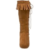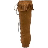 - Mens Faux Suede Indian Boot with Vinyl Bottom Sole, Apprx 17″ Boot Shaft Topped in Fringe, Side Lacings with Metal Lace Up Hooks