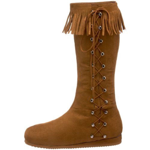 Look your best as chief or strong brave in these indian flat boots. This boot is an awesome replica of traditional Indian footwear with its faux suede upper, lace-up detail, and tasseled trim. You're sure to be the life of the party.