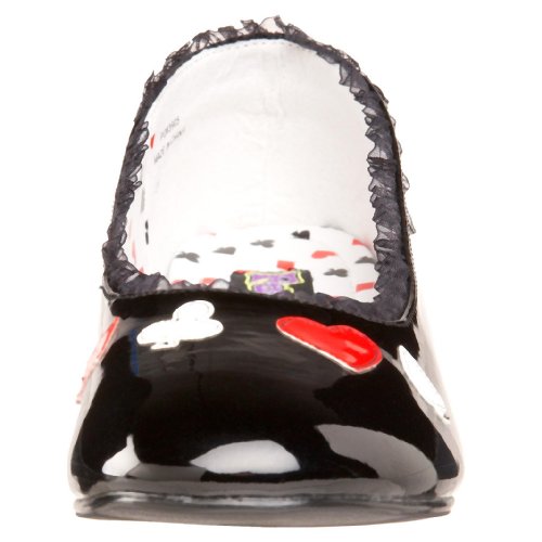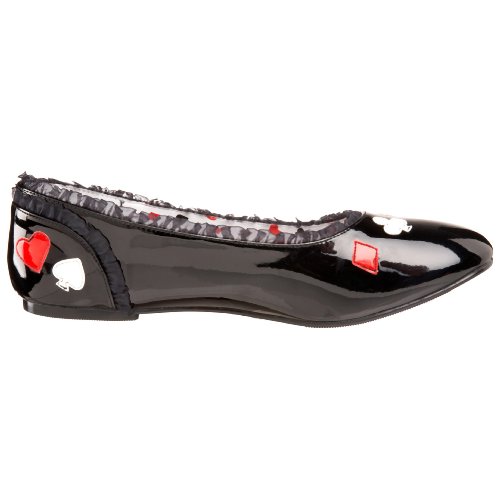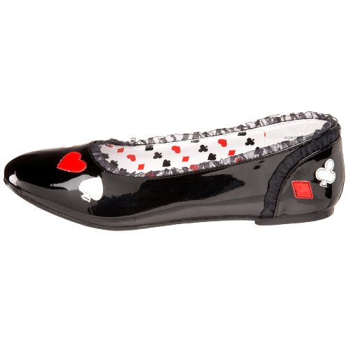 You'll feel like you've stepped down a rabbit hole when your foot is coated with lace in these patent leather flats adorned with clubs, hearts, diamonds, and spades on the outside and inside lining.