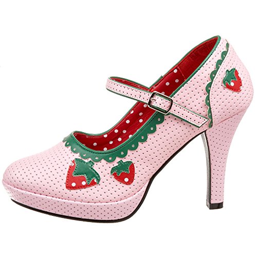 Be sassy with these Contessa-58 by Pleaser, feature B. Pink Pu, 4″ Heel, 3/4″ PF,Strawberry Short Cake Maryjane Costume Pump,man made sole, slightly padded, close toe