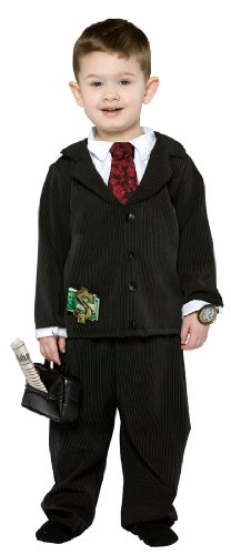 Everyone knows he's the next billionaire. Why not flaunt it? Future Tycoon toddler boys costume includes suit jacket with matching suit pants and soft accessories: money clip, black faux leather briefcase with a newspaper and a gold watch. Costume is made of 100% Polyester. Tycoon costume for toddler boys is available in Toddler Size 3-4.