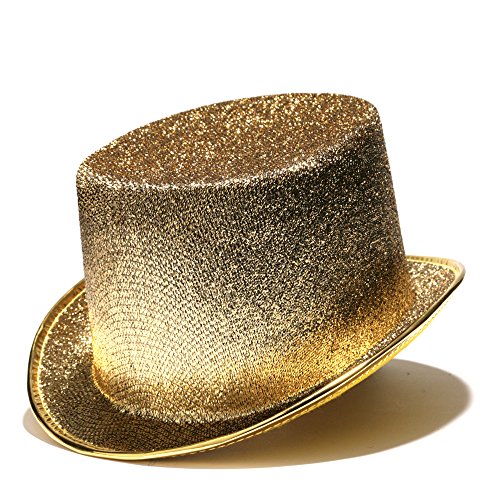 Top Off Any Costume with the Perfect Top Hat! Complete any costume with a stylish top hat. The gold glitter top hat is perfect for New Years Eve parties and dance recital costumes. One size fits most adults. Approximately 22 1/4″ circumference around inside of hat. Gold glitter top hat with yellow felt backing. Our unique dance costume accessories are just what you're looking for. We have the costume hat for your outfit that people will remember and admire. Part of Costumes > Hats & Wigs > Top Hats, Derbies, & Fedoras