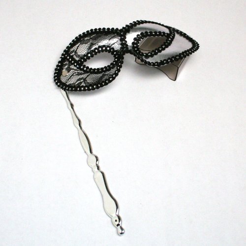 Masquerade in style with Mardi Gras Masks! The silver half mask on a stick is a great addition to any Mardi Gras party, Halloween costume or Masquerade ball. Celebrate in a secretive and stylish fashion with this venetian half mask. Half face mask. Silver face mask is 7″ wide. Silver plastic handle attached. Silver mask with black accents. Cloth covered plastic lays smooth on your face. Plastic handle is 8″ long. Having a masquerade balls These half masks are the perfect party favor! Make sure no guest is without a masquerade mask. Give away a half mask at the door to get the masquerade party or masquerade theme dance going! Part of Costumes > Masks