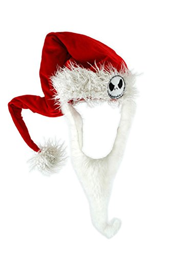 Deck the halls and deck yourself out as your favorite skeletal “Sandy Claws” with this wonderful recreation of Jack Skellington's Santa hat. This licensed hat comes complete with the crooked shape, long, thin beard and Jack's image. Thereâ€TMs children throwing snowballs, instead of throwing heads, theyâ€TMre busy building toys, and absolutely no oneâ€TMs dead!