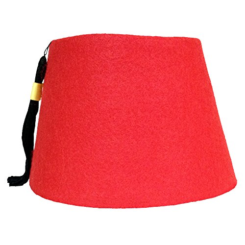 Fezzes are cool. We have handmade fezzes ready for your awesome adventures. Red felt fezzes are fully lined and have a thin elastic strap to keep them on your head when your'e partying. This particular model also has a black tassel. Each fez is custom made for you. Exact shades of colors may vary. Sizes may vary slightly. Approximate Measurements: Circumference 23in x Height 5in