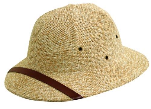 This pith helmet is made from 100% twisted Toyo woven to create a hard shell. The 2.5 inch brim will protect you from the sun and wind. Features leather interior band with an adjustable Velcro closure. The interior features a cushioned Terry covered sweat band in front to keep you cool and comfortable. The traditional pith helmet is designed to protect from the sun and wind in even the harshest conditions. Whether going on safari, an excursion through the desert or just gardening outdoors you will find this lightweight, water resistant pith helmet hat offers the perfect protection.