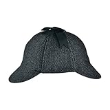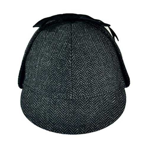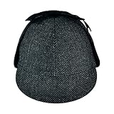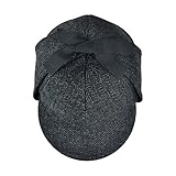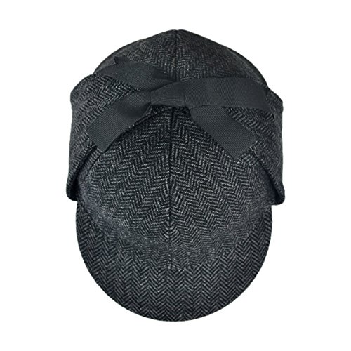 The attractive cap, also known as a deerstalker hat, is detailed in an attractive herringbone pattern, ear flaps and tonal grosgrain ribbon ties.