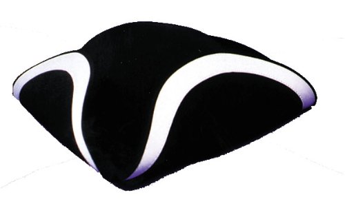 Quality black wool tricorn hat with white trim. Brim measures 4 inches, and 4 1/2 inches tall.