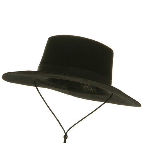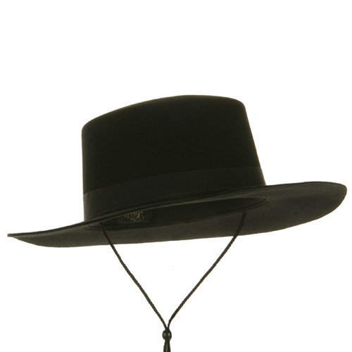 Our gentleman style Spanish Black Wool Felt Hat offers a classic vintage look with a touch of edginess. This wool felt hat is perfect for theatrical, masquerade or costume events for Halloween. You can't help but to love a man that exudes with whimsical grace that still manages to look like a tough guy. Crown of this wool felt hat is accented by black hat band and hat features chin cord that is attached through the brim, bringing out the mysterious charm in you! This soft felt hat will definitely bring you classic, stylish look that will match well with suits or nice and formal clothes. Made with felt wool material.Available sizes with elastic band inside: S/M, L/XL.Crown measures 4 inches deep with hat band.Brim measures 3 1/4 inches wide, chin cord attached.Thick, soft and stiff material.Hand wash only.Imported
