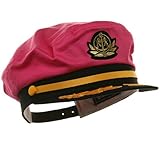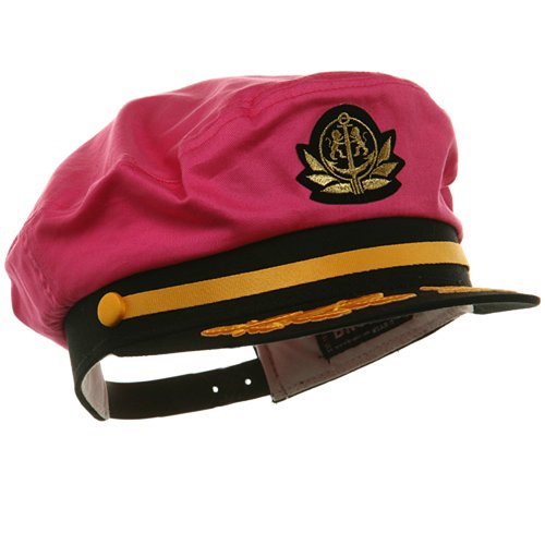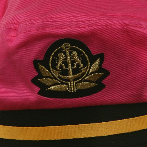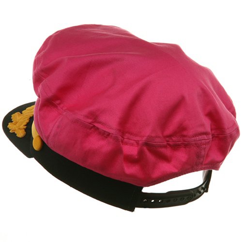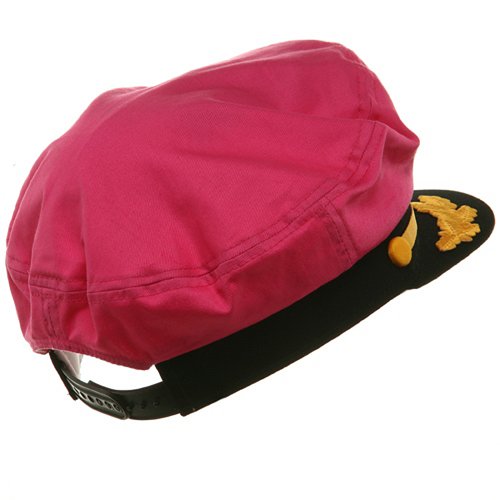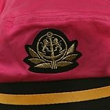 Yacht much? You will once you've seen yourself in this hat. For your fantasies of being at the helm of a huge yacht with numerous crewmen at your beck and call, you're going to need this hat. This detailed hat has everything; ship not included. The crown is made of a cool pink cotton, with a patch of gold stitching on black fabric, at the front of the hat. The 2-1/2″ brim is covered in a stark black cotton, to match the background of the patch, with beautifully detailed gold leaves embroidered onto the brim. The hatband is also covered in black fabric, with a matching gold elastic band fastened to the band with two simple fabric covered buttons. The inside of the hatband is lined in padded cotton for comfort. Made of 100% Cotton. One size fits most with Adjustable Plastic Snap Closure. Crown measures 3 1/2 inches Deep, 2 1/2 inches Long Bill. Soft Material, Hard Bill. Hand Wash only. Imported. Available in colors: Black, White, Navy, Pink and Red.