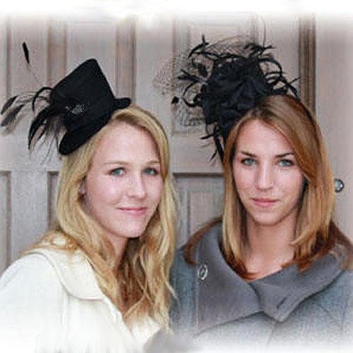 - Hat looks like a mini-top-hat with feathers coming out of the hatband.