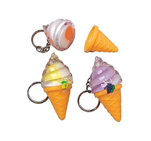 This ice cream shaped lip gloss is a fun party favor to hand out. The lip gloss is hidden in the ice cream top. Assorted flavors and colors. 12 Adorable Ice Cream swirl lip gloss key rings per order.