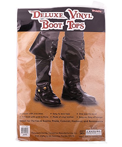 Whether your Fashioning Old Renaissance or Medieval Costumes, Santa Costumes or Pirate Costumes, Kangaroo's Deluxe Vinyl Boot Tops are a Necessary Costume Accessory. High Quality Leather Look A Like Boot Covers with Gold Snap Closures make this the Most Authentic Looking Renaissance or Pirate Accessory on the Market!