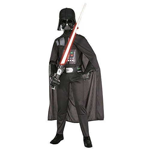 Practice the Dark Side, not to mention your heavy breathing. The Darth Vader Child costume is great fun. It features a printed jumpsuit, a long black cape, 3-D utility belt, and a Darth Vader facemask. Gloves and lightsaber not included.