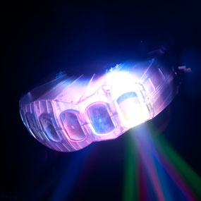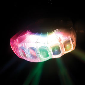 • Unique LED lighting effect with clear plastic case that offers two effects in one; (1) Bright RGBW colors beams and (2) a color changing, glowing case