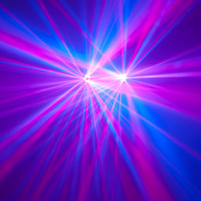 - Moonflower with 108 razor sharp multi-colored, dichroic beams 3-Watt RGB 3-in-1 LED (20,000 hr. rated)