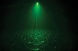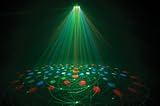 - 2-FX-IN-1: LED Dual Lens Moonflower with sharp Red, Green, Blue, & White high output colored beams + “Galaxian style” effect with hundreds of green beams