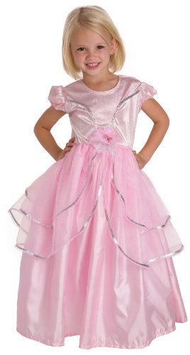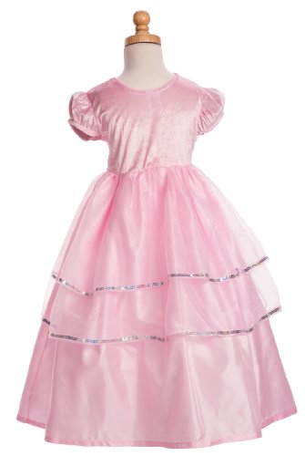Every princess loves pink! This classic style has a beautiful layered pink skirt. The pink velvet bodice, decorated with silver sequin and accented with a blossomed pink flower, will make any princess feel majestic.