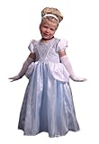 This glamorous dress is perfect for a night at the ball. The stretchy blue velvet bodice is elegantly detailed with a gathered white inlay, ruffled cap sleeves, sparkling silver trim and a white rose. The silver trimmed hip drapes outlined with ruffle capture that authentic Cinderella look. ***MODEL IS WEARING OUR FULLNESS PETTICOAT – AVAILABLE SEPARATELY****