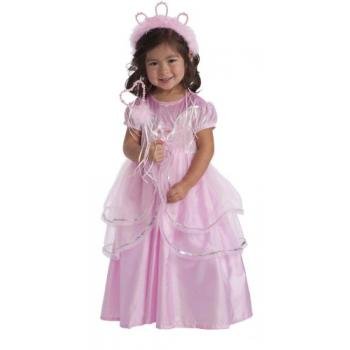 Every princess loves pink! This classic style has a beautiful layered pink skirt. The pink velvet bodice decorated with silver sequin and accented with a blossomed pink flower will make any princess feel majestic.
