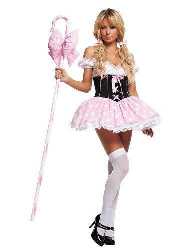 Men will want to take more than a peep at you when you're looking this hot, this Halloween. Turn a classic story book character into an outfit that could seduce any man, and buy this Little Bo-Peep Sexy Adult's Costume. The alluring outfit comes with a pink polka dot dress, with a lace up black bodice.