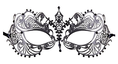 Signstek Metal Laser Cut Filigree Masquerade Venetian Party Mask, Black/Clear Stones