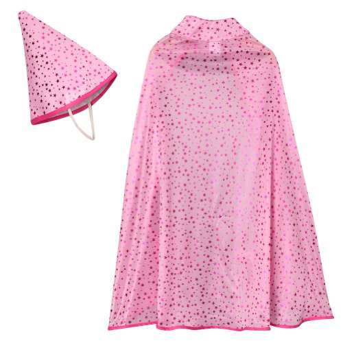 Cute princess style magician cape set. Includes cape and hat. Imported.