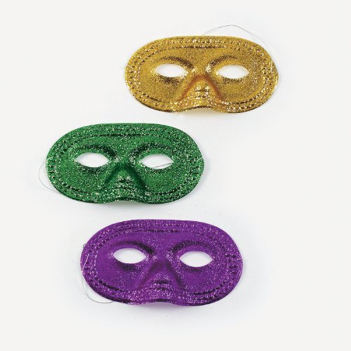 Deck yourself out in any of these mardi gras glitter half masks come assorted in purple, gold and green!