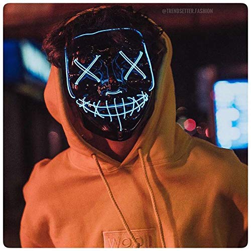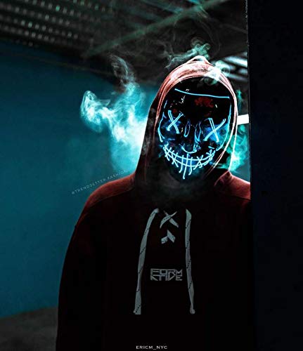 - Glowing EL Wire is woven into the mask, made of durable PVC, has no UV harm, NO adverse effects on the human body