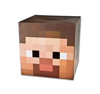 - Cardboard construction / Officially licensed / Based off of the hit game Minecraft / Easy to see eye holes .