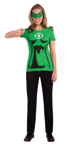 - Women's style t-shirt with green lantern print, eye mask and ring
